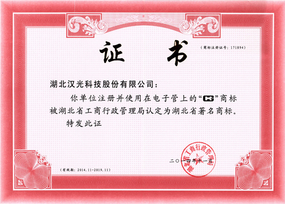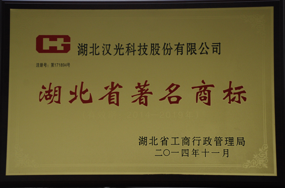 2014年11月,繼“三工”商標(biāo)之后,我公司由漢光的拼音字母HG組成的圖案商標(biāo)繼續(xù)被認(rèn)定為湖北省著名商標(biāo)。