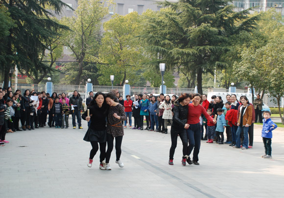 今年的比賽項(xiàng)目除了保留的兩人三足跑、端乒乓球接力、車輪滾滾、背運(yùn)氣球和跳繩外,還增添了踩氣球比賽,受到大家歡迎,共有15個(gè)隊(duì)參加踩氣球比賽。五顏六色的氣球在女工們的腳下噼哩叭啦炸響,將比賽氣氛推向高潮。